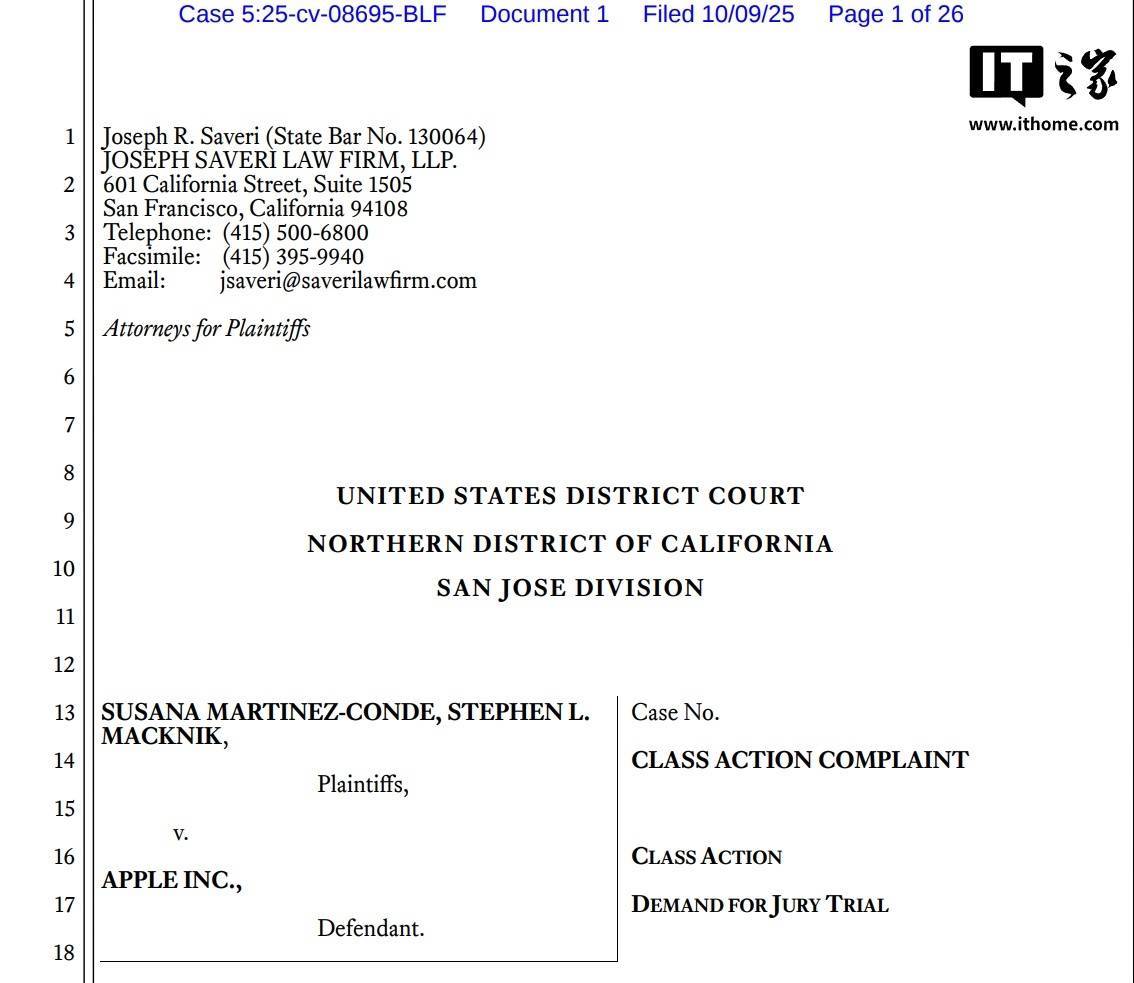 苏珊娜・马丁内斯-康德(Susana Martinez-Conde)和斯蒂芬・麦克尼克(Stephen Macknik)两名来自纽约州立大学健康科学大学的学术作者已对苹果公司发起集体诉讼。